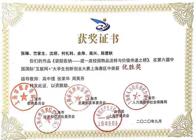 4、《袋鼠收纳——建一座校园物品流转与价值传递之桥》项目:学生团队:张琳、竺家生、沈玥、何礼科、余萍、高兴、陈楚秋;指导教师:高中理、张荣华、周英芬。