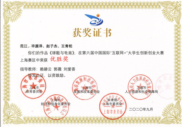 2020年疫情防控期间,商学院积极动员,共有160多项“互联网+”大学生创新创业项目参加第六届中国国际“互联网+”大学生创新创业大赛校园选拔赛,其中17项入校学校复赛。经过师生艰苦努力,在校决赛中有4项脱颖而出,参加上海市比赛,荣获四项优胜奖,学生团队共20人,指导教师12名。