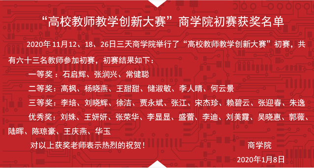 “高校教师教学创新大赛”商学院初赛获奖名单