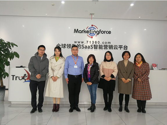 为更好地了解数字产业化发展状况,2021年3月5日上午,商学院刘爱香书记、周英芬副院长等一行5人至珍岛信息技术(上海)股份有限公司总部调研。