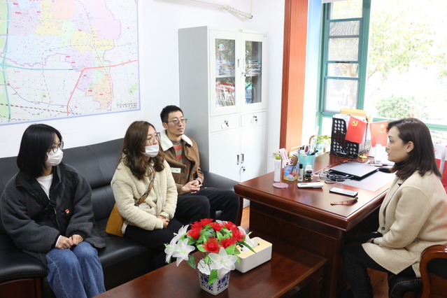 3月18日,商学院党委副书记王晨岑、党委组织委员俞海燕、辅导员曹艳萍、徐光硕和校友会负责老师叶媛媛,分赴宝山区大场镇大华二村第八居委会、大场镇大华四村第三居委会、虹口区凉城新村街道办事处居委会走访和看望扎根基层就业的商学院优秀毕业生。