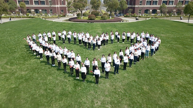 紧接着,全体师生党员来到图书馆前的大草坪爱心站点。在温暖阳光的沐浴下,大家有序排列成一个爱心形状的队伍,挥动着鲜艳的党旗,齐唱《没有共产党就没有新中国》,通过嘹亮的红歌声传递着对祖国的热爱、对党百年华诞的祝福。