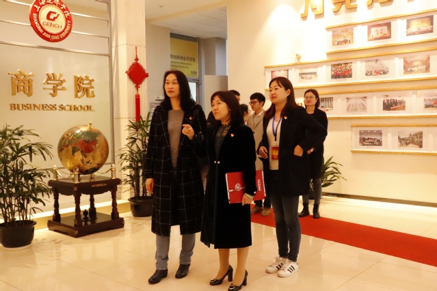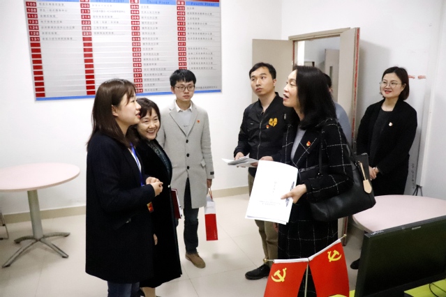在商学院党委书记刘爱香同志的引导下,调研组专家参观了商学院“学生党员一站式”服务中心、8号楼北大厅党建宣传栏和党建中心,听取了学院党委书记刘爱香同志关于党建工作的汇报、组织委员俞海燕等同志关于学院党员培养发展工作和党费收缴工作的汇报,党委副书记王晨岑同志介绍了学院“双创”项目的建设情况。专家们仔细查阅了党建工作的相关资料与党建中心的公众号,提出了基层党建工作的相关问题,学院党委相关成员一一回答了专家们提出的问题。