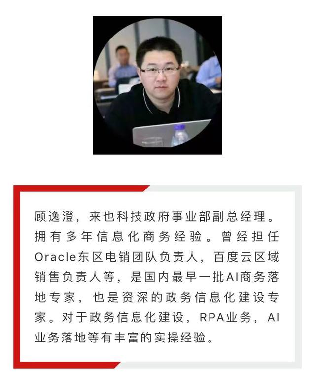 会议主题围绕工业4.0背景下企业数字化转型中的变革与创新。来也科技CPO、来也科技行业研究院院长,国防科技大学计算机专业博士褚瑞先生做了题为《未来已来—软件机器人带来的办公效率革命》主旨报告,来也科技政府事业部副总经理顾逸澄先生就《数字劳动力的现在与未来》与参会人员进行了分享。演讲嘉宾认为RPA+AI正在成为政企数字化、智能自动化转型的新趋势。RPA(机器人流程自动化)即是由配置在电脑等职能设备上的RPA机器人模拟人类的点击、输入等人机交互操作,完成基于固定规则的重复性工作。融合了 RPA + AI 的软件机器人通过文字识别、文本理解、自然语言处理等技术,将打通不同数据系统、后台与前端,帮助各行各业实现智能自动化转型,助力政企实现智能时代的人机协同,提高办公效率。