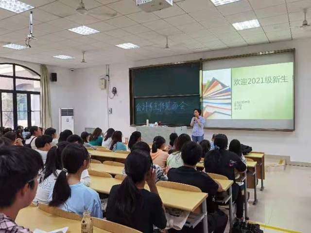 为了让新生更好地融入大学生活,增进新同学之间的情谊,提前规划好自己的人生目标,商学院会计系于2021年9月15日上午在一教122举办了新生见面会。出席本次会议的人员有:商学院会计系系主任黄怡婕老师,大一会计辅导员王浩洁老师,大一会计辅导员谭静静老师,会计系朱伟伟老师,方晶晶老师,王双老师,钱倩老师以及21级会计新生。