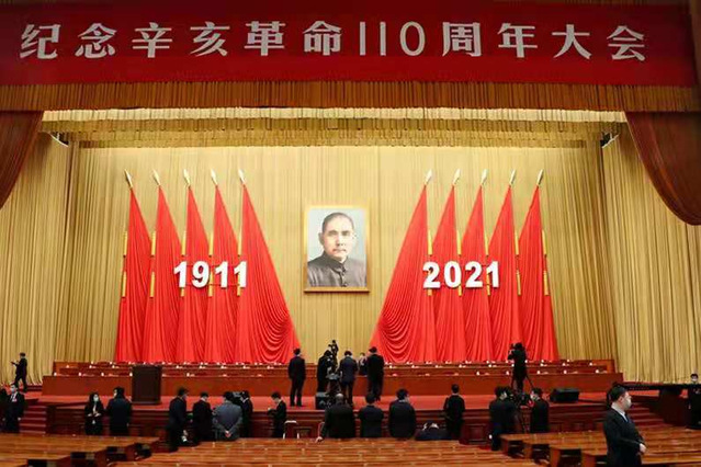 大会上,习近平总书记指出辛亥革命的发生,有着深刻的社会历史背景,是近代以来中国社会矛盾激化和中国人民顽强斗争的必然结果。在孙中山先生领导和影响下,大批革命党人和无数爱国志士集聚在振兴中华旗帜之下,广泛传播革命思想,积极兴起进步浪潮,连续发动武装起义,推动了革命大势的形成。在辛亥革命110周年之际,缅怀孙中山先生等辛亥革命先驱者们的历史功勋,就是要学习和弘扬孙中山先生为振兴中华而矢志不渝的崇高精神,团结并激励海内外全体中华儿女,反对“台独”等分裂国家行为,坚持中国特色社会主义是实现中华民族伟大复兴的唯一正确道路,并始终坚信中华民族伟大复兴必须依靠中国人民自己的英勇奋斗来实现。