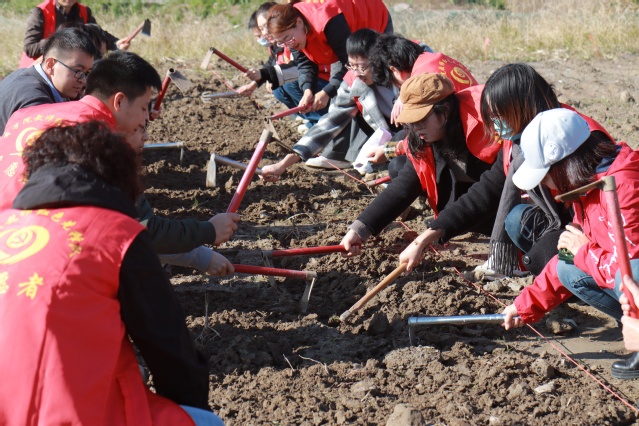 南泥湾精神是“中国共产党人的精神谱系”的重要组成部分。“自己动手、丰衣足食”是南泥湾精神的核心,激励着无数仁人志士前赴后继、拯民于水火,深刻诠释了中国共产党人革命精神的鲜明特质。为了更好的赓续南泥湾精神,11月25日上午10:00,商学院党委书记刘爱香、副书记俞海燕以及商学院全体辅导员团队深入到学校劳动教育基地进行农业生产。
