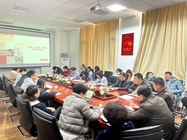 12月20日,学生处、后保处、商学院在商学院8305会议室就学生防诈骗相关工作展开了会谈,学生处副处长张莉、后保处副处长傅佳喆、后保处李桢老师、商学院党委书记刘爱香,副书记俞海燕以及商学院全体辅导员出席本次会议。