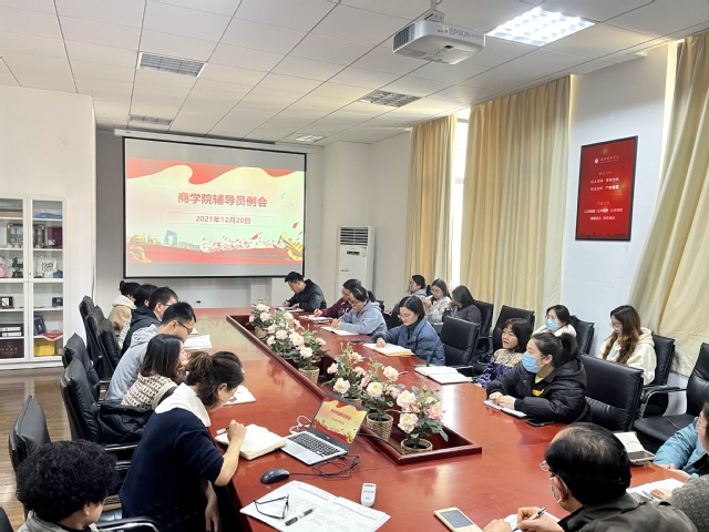 12月20日,商学院于8305会议室组织召开了辅导员例会,商学院党委书记刘爱香,副书记俞海燕以及商学院全体辅导员出席本次会议。