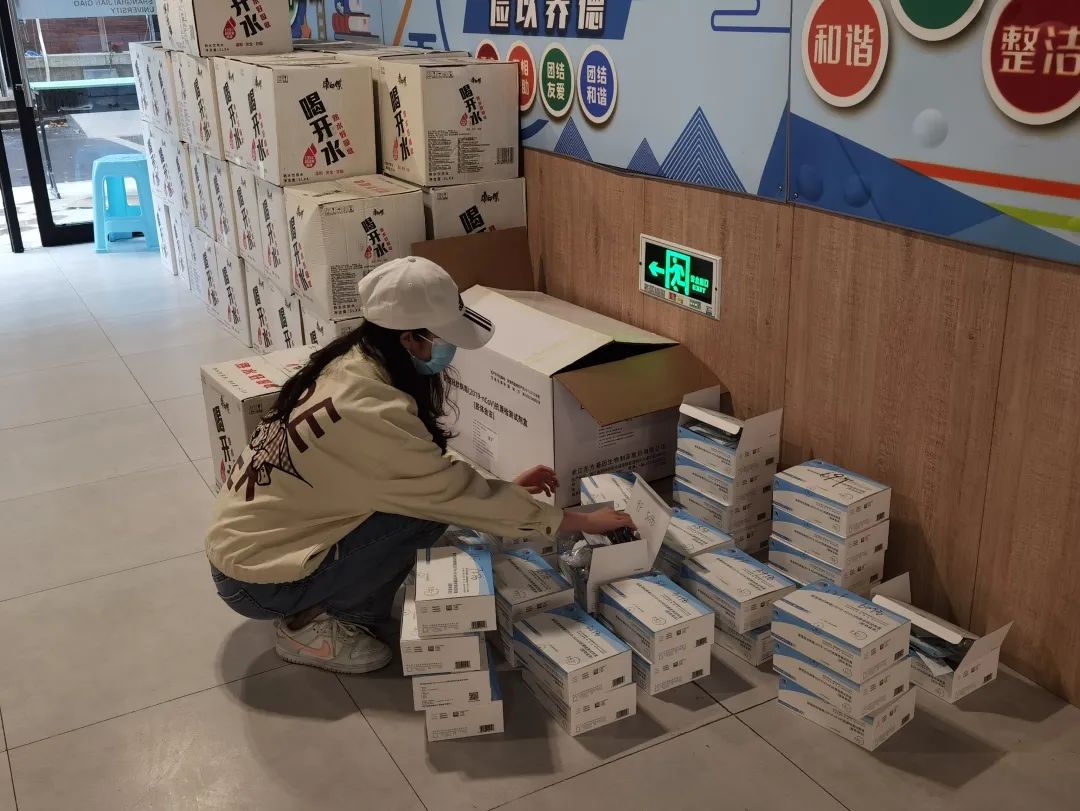 答:封楼期间,我主要负责在南九宿舍为第八层的同学配送餐食和抗原,这是最基本的。除此之外还包括统计和配送同学们需要的生活必须品,如饮用水、卫生纸等。