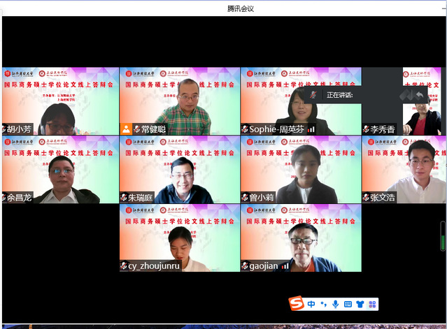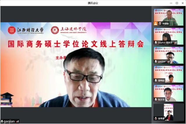 5月14日,我校商学院与江西财经大学国际经贸学院共同举办联培研究生毕业论文线上答辩会。参加答辩的评委专家包括江西财经大学国际经贸学院的余昌龙副院长、李秀香教授、胡小芳秘书,我校朱瑞庭校长、商学院高健院长、国际教育学院周英芬书记、商学院院长助理常健聪教授。曾小莉等三位国际商务专业硕士研究生参加了毕业论文答辩会,全部通过答辩,顺利毕业。王嘉怡等三位海洋大学的在读联培研究生旁听了答辩会。