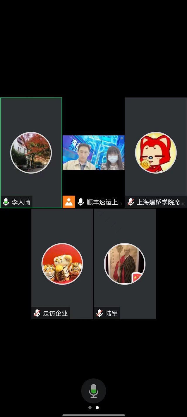 顺丰速运上海区人才生态与供应链模块负责人王纪星先生、主管田旭瑶小姐参加沟通会和发言,介绍了该公司概况、校企合作展望和目前建桥商学院王子豪和赵彭学生的就业和实习情况,特别表扬了我校物流管理学生王子豪同学的良好专业能力和职业素养。刘爱香书记对顺丰速运上海区为我院学生提供实习和就业机会表示感谢,并介绍了商学院各专业学生就业方向和与公司可对接的相关专业情况。物流管理系系主任李人晴老师重点介绍了物流管理系培养目标和建系历史、校企双方可合作的项目、应届毕业生的概况,就双方目前和9月份的合作内容,如企业宣讲会、课程对接、校园快递生态建设等方面提出了想法。物流管理系辅导员陆军老师和席亚凤老师介绍了应届毕业生目前就业情况和部分学生对贵司的求职意向。会后双方建立了校企沟通群并对应届毕业生的求职进行对接和跟踪。此次线上拜访旨在全力促进商学院物流管理系开拓就业渠道和就业岗位、促进学生更高质量就业和确保2022届毕业生就业率提升。
