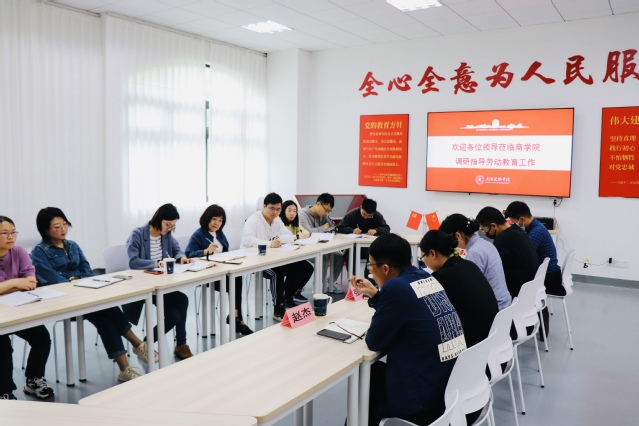 为更充分发挥劳动教育育人功能,提高劳动教育教学质量。5月6日上午,副校长陈伟、学生处处长张巍、副处长张莉、劳动教育指导老师赵杰教授以及学生处劳动教育课程负责人邵宇豪一行赴商学院开展劳动教育课程调研巡查。商学院党委书记刘爱香、副书记俞海燕以及商学院劳动教育任课老师出席。