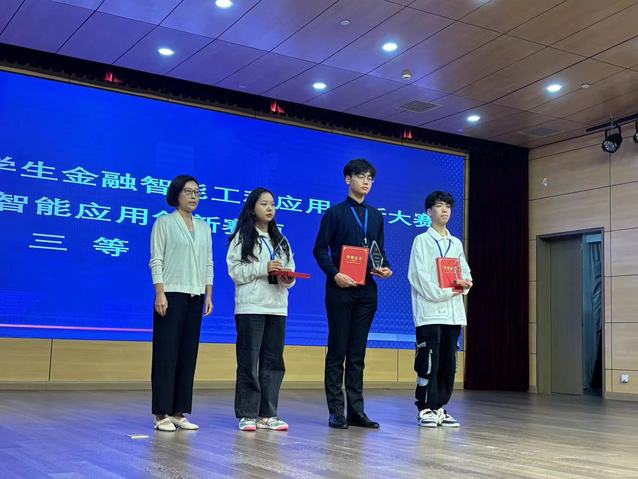 在上海市金融智能工程应用创新大赛中,戴聪谨、覃紫怡、赵倩、赵诗靓组成的团队,在赛制规则变化大且难度增加的情况下,克服种种困难,团结合作,最终在金融智能应用创新赛项中喜获团队三等奖,为我校争取了荣誉。