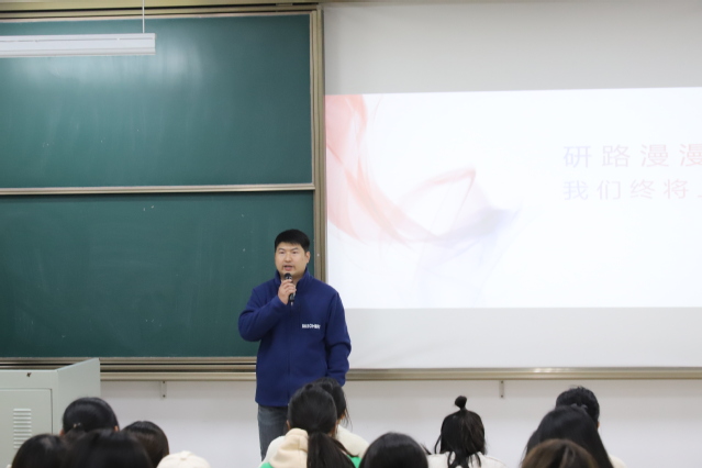 第一场分享会由李丕煌主讲,他从考研意识、考前准备、考研备考和注意事项四个方面向大家进行了分享。在考研意识方面,对专业和院校要进行充分的了解,考研目标的选择至关重要。在考前准备方面,要先了解考研过程中的重要时间段,随后确定环境、制定计划和抵制诱惑,在资料上,向大家推荐了一系列的公众号。在考研备考方面,他为学弟学妹们提供了在英语、政治、专业课学习上的一些有用的方法。