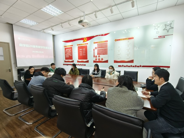2023年12月1日下午,商学院24届考研学生代表座谈会在商学院333会议室成功举办,商学院党委副书记俞海燕、毕业班辅导员和24届考研学生代表参加,座谈会由考证考研指导中心负责人陆军主持。