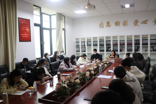 会议伊始,商学院党委副书记俞海燕首先从本学期学生思政工作、学生日常事务管理工作等方面对商学院辅导员工作进行总结,梳理了辅导员老师在学生工作中的好经验、好做法,高度肯定各位辅导员老师在本学期各项学生工作中所付出的辛勤劳动。