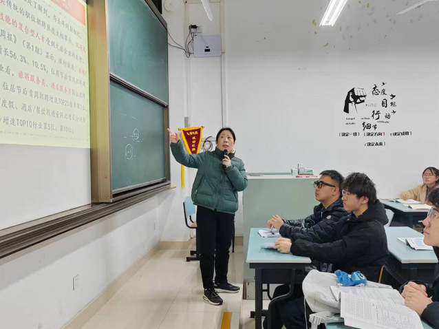 其中,旅游B23-1班导师盛蕾老师结合自身求学、教学和科研等方面经历,针对就业规划、素养提升和个人成长等方面给同学们提供了宝贵建议,她强调英语对旅游专业的重要意义,鼓励同学们坚定信心,认真备战四级!