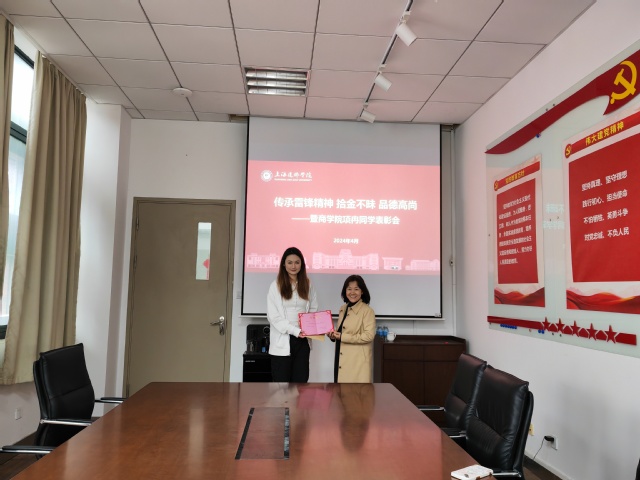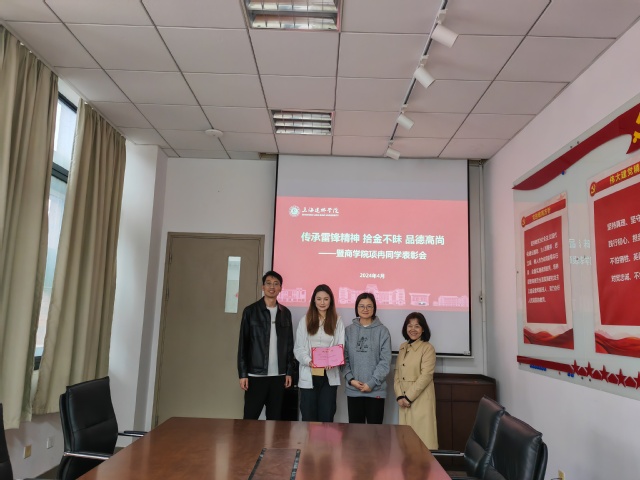 商学院党委在获悉项冉同学的先进事迹后,特地召开了表彰会,学院党委书记刘爱香为其颁发了“弘扬雷锋精神 拾金不昧 品德高尚”的荣誉证书,并勉励其好好学习天天向上,把雷锋精神代代相传,也呼吁学院广大学子向项冉同学学习,积极传播社会正能量,努力践行社会主义核心价值观。
