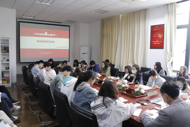 4月28日下午14:00,商学院在8305会议室召开辅导员例会。会议由商学院党委书记刘爱香、副书记俞海燕主持,全体辅导员均出席了此次会议,共同就学院近期工作进行深入研讨和部署。