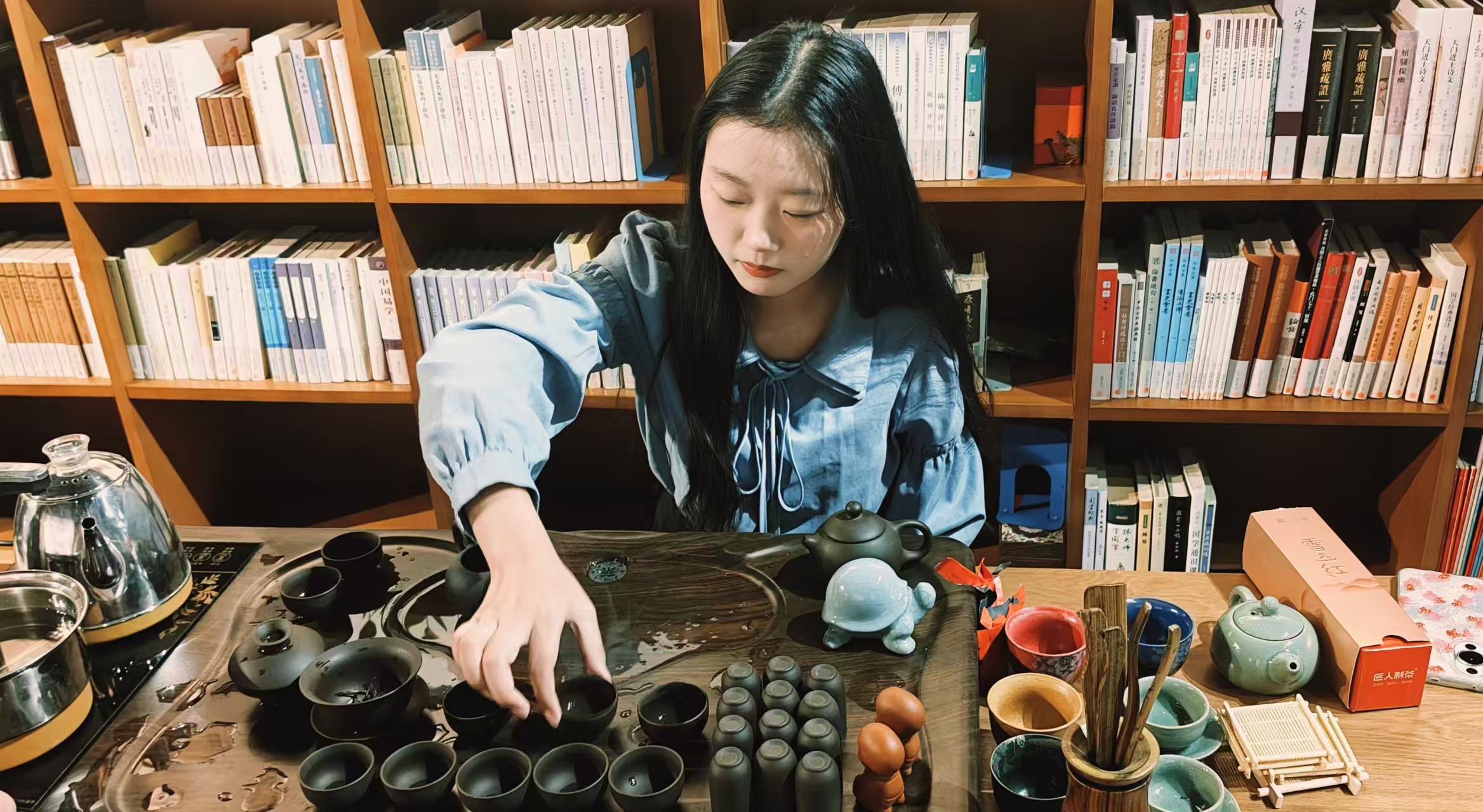近日,上海建桥学院商学院明德读书会在图书馆国学阅览室温情举办“清茗酬知己,《大学》论修身” 主题茶会。二十余名热爱传统文化的同学齐聚一堂,以茶为媒、以经典为引,在氤氲茶香中感悟修身之道,传承中华优秀传统文化。