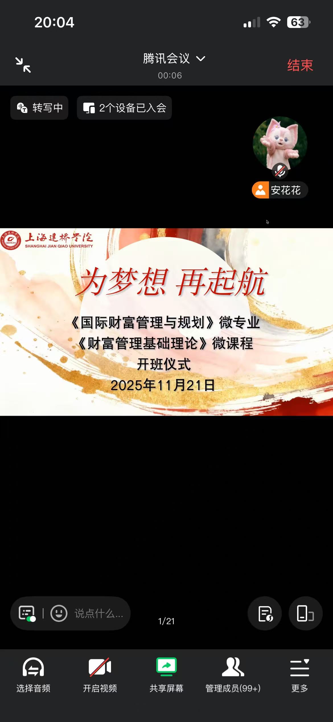 2025年11月21日由上海建桥学院商学院主办的《国际财富管理与规划》微专业及《财富管理基础理论》微课程开班仪式在线上隆重举行。本次仪式吸引了来自上海海事大学、上海电力大学、上海建桥学院等临港五所高校的200余名学子齐聚云端,共同见证金融人才创新培养项目的正式启动。