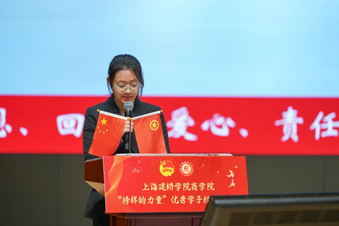 沈欣瑶学姐秉持学校“感恩、回报、爱心、责任”的校训精神,紧扣立德树人机制综合改革要求,分享了从深耕思想学习到牵头“学业互助小组”,从斩获国家级科研竞赛奖项到长期参与志愿服务的多维度成长经历。她以自身实践证明,商科学子的使命不仅在于专业精进,更在于以己之力带动同辈共同进步。她表示,将继续深耕专业领域,持续传递互助帮扶的正能量,以个体成长助力集体卓越,在协同共进中彰显立德树人的实践成效。