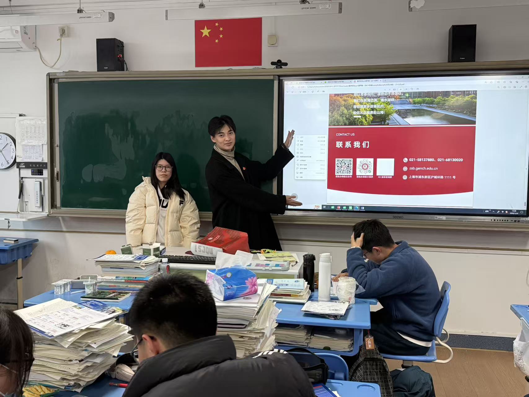 高昕同学提前与校长孙政庭老师沟通后,得知孙政庭老师对此次返校宣讲高度重视,主动协调了高三年级的班主任,并提前通知学子们做好提问准备。高昕与鞠碧珺两位同学结合建平世纪中学学子的升学需求,精心梳理了宣讲框架,将五大核心讲解内容逐一打磨,补充了大量贴合上海学子的实用细节。重返校园的那一刻,熟悉的教室、亲切的师长、朝气蓬勃的学弟学妹,让高昕、鞠碧珺快速卸下紧张,以最饱满的状态,开启了这场专属分享。