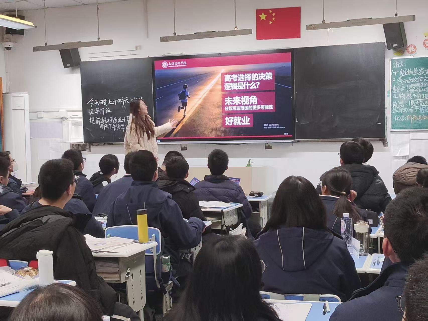 宣讲当天,阳光正好,暖意融融。王艺蒙背着装满宣讲物料的背包,步履从容地走进熟悉的教学楼,走进曾经承载着自己无数梦想的教室。当她独自站上那方熟悉的讲台,指尖触碰黑板的瞬间,心中既有几分忐忑与紧张,更有满满的激动与坚定。台下,学弟学妹们坐得笔直,一双双清澈的眼睛里,满是对大学的好奇与向往,也藏着对未来的迷茫与期许。“大家好,我是王艺蒙,曾经和你们一样,在这里奋力拼搏,如今,我以上海建桥学院学子的身份,回到母校,想和大家分享我的成长与感悟。”简单的开场白,褪去了拘谨,拉近了距离,也正式拉开了此次宣讲的序幕。