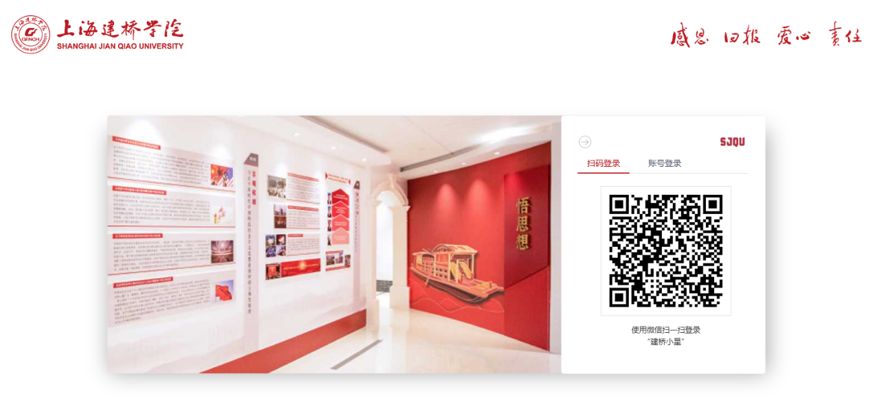 1.登录上海建桥学院工作台(网址:https://my.gench.edu.cn/)并使用微信扫码方式登录。