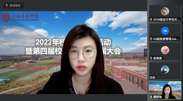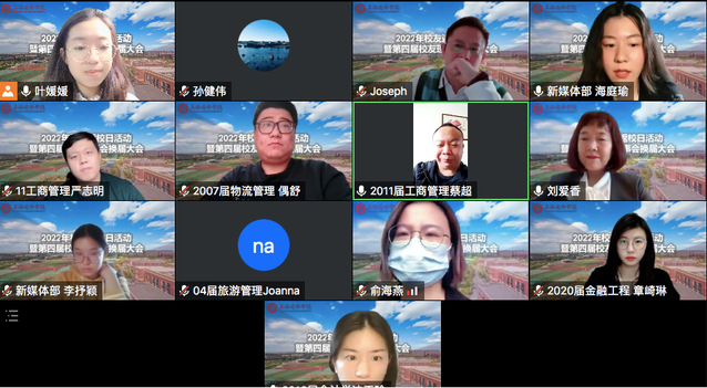 2022年11月19日上午,上海建桥学院商学院第四届校友理事会换届大会在腾讯会议顺利举行。出席活动的人员有商学院党委书记、校友分会理事长刘爱香副教授,商学院党委副书记、校友分会副理事长俞海燕老师,商学院校友分会秘书长叶媛媛老师以及校友代表。
